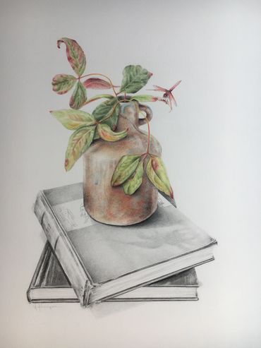 The creative process begins with sourcing and creating a still life scene that inspires me to capture it on paper. The inspiration comes from transforming everyday items into something special so the viewer stops to see how interesting the ordinary can be.